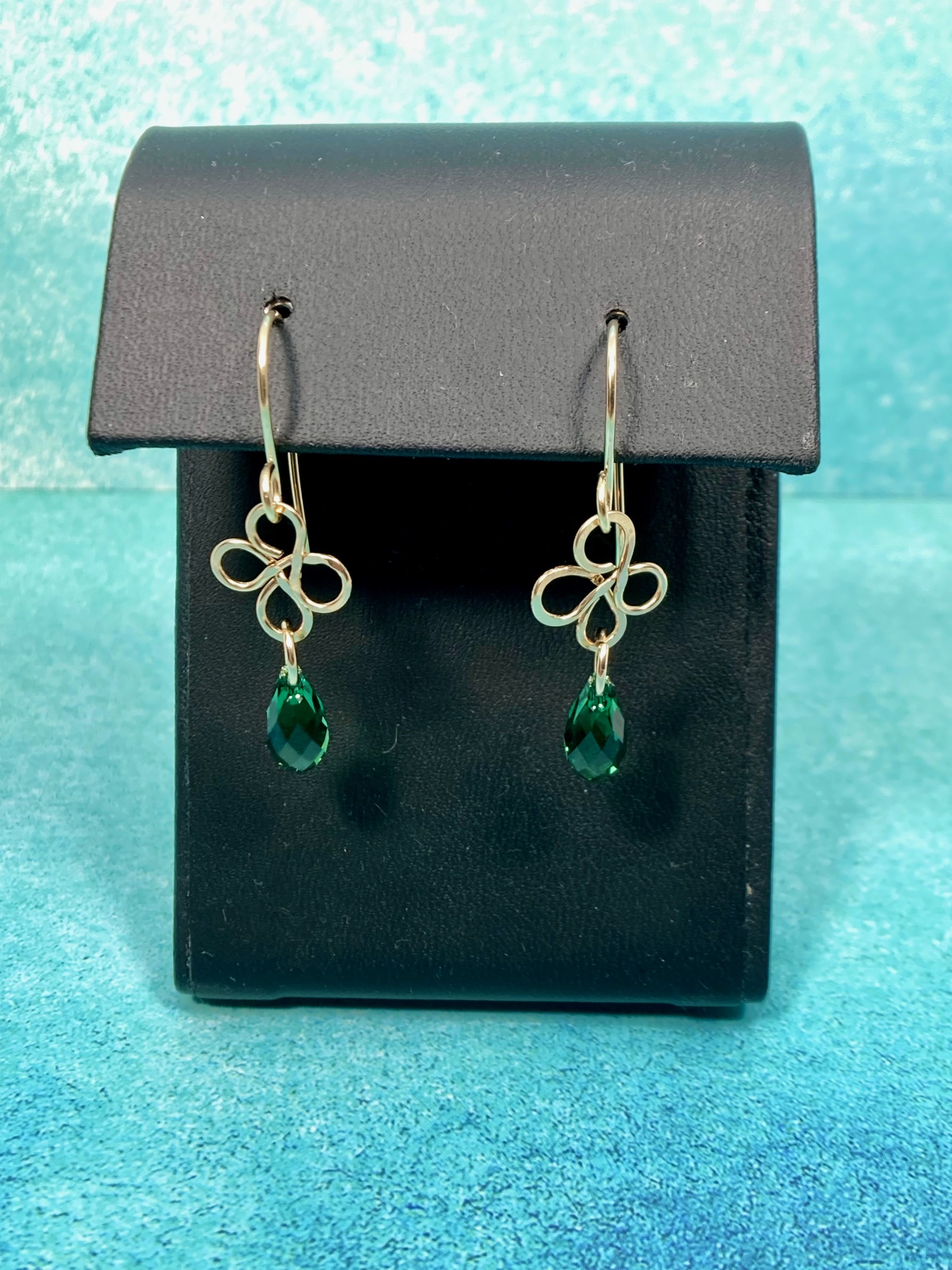 14KGF Clover shaped earrings with Erinite Briolettes. Briolettes are Crylstal 11/5.5mm. Earwires are 20 gauge French hook design.